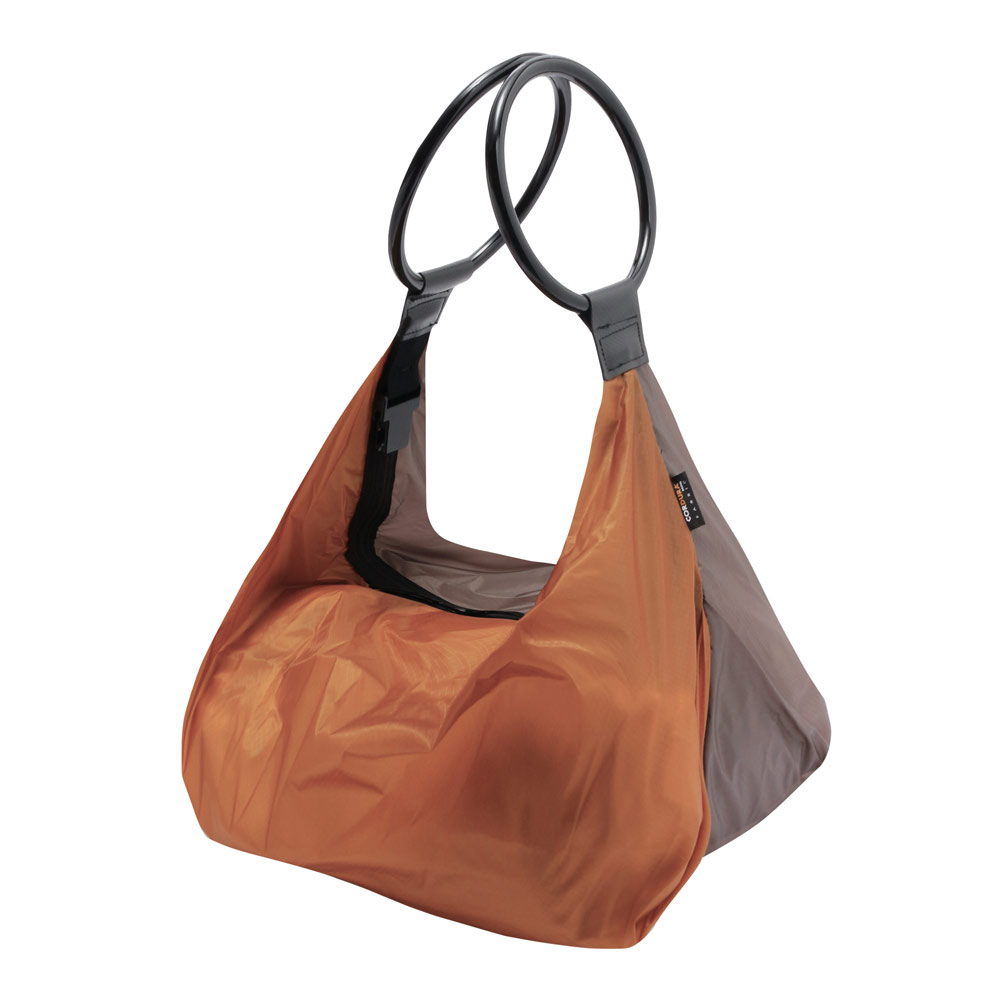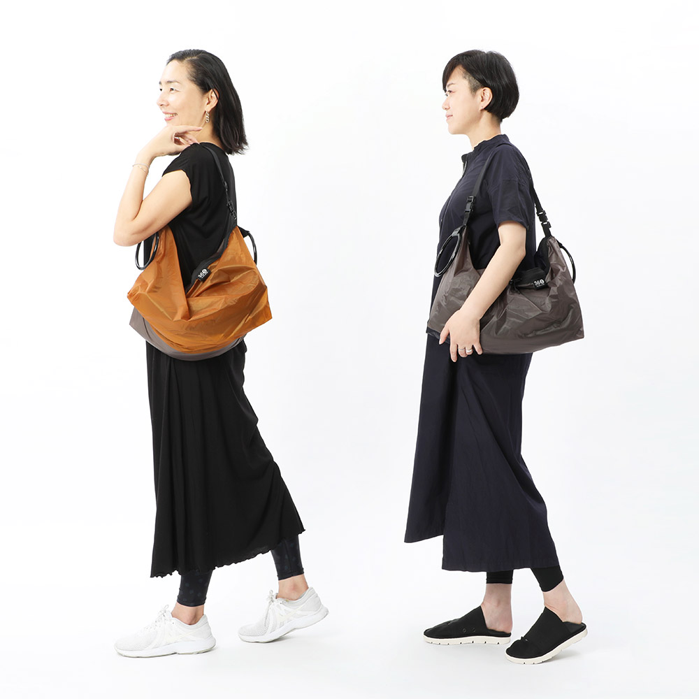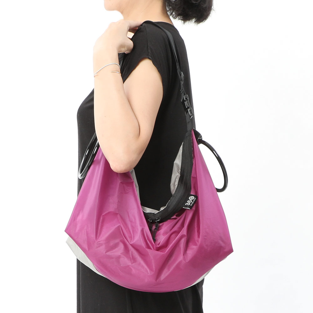 ストラップを肩に掛ければショルダーバッグ、両サイドのリングハンドルを合わせて持てばトートバッグ、片方のハンドルをフックに掛ければラックの様に! 薄くて軽いのに、丈夫で大容量な3wayマルチパーパスバッグ。小さくたたんでサブバッグとして、沢山荷物を入れてメインバッグとして、荷物の量が多くても少なくてもキャッチーなリングハンドルがアクセサリー感覚でスタイリッシュにキマる! 着脱可能なストラップは、他のアイテムに接続したり、フックの無い場所にバッグをかける事も可能。荷物が重い時や、バッグの上に上着を着てしまった時でも、ストラップのバックルを外せばそのまま楽々テイクオフ! リングハンドルは持ち手としてだけでなく、上着やストールを掛けたり、ウォレットチェーンなどを繋いでも◎ 撥水生地なので急な雨でも安心な全天候対応。それぞれのライフスタイルに合わせて自由に使える機能美バッグ。