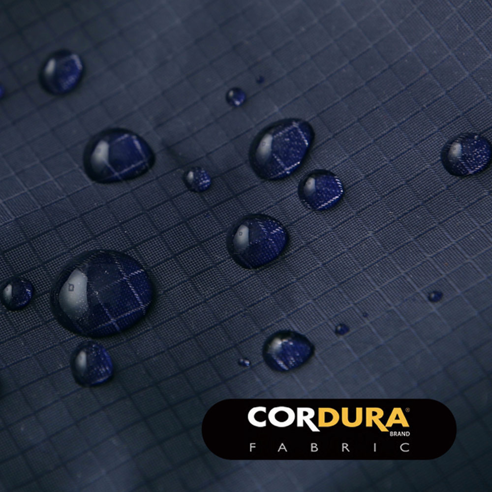 バッグ本体の素材には、クオリティーに信頼のおける米国インビスタ社のコーデュラナイロン®を採用。表にはシリコン、裏にはPUがコーティングされた雨の日も安心な全天候対応素材。生地に織込まれた縦横の格子状繊維は、非常に強度が高く破れにくいリップストップ仕様。シアー感のあるスタイリッシュなビジュアルに、軽さと強度、高い撥水力を兼ね備えた高機能素材。