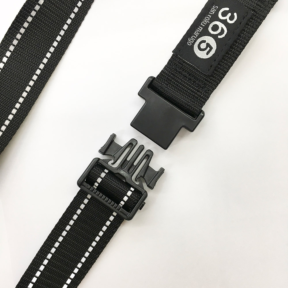引張強度、耐摩耗性、耐熱性に優れたポリプロピレン素材の36⑤コンポジションアイテムバッグ専用ストラップ。バックルは、軽く丈夫なプラスチック製。ワンプッシュで簡単に着脱可能なセパレートタイプのバックルを採用しており、スライドして約50cmから最大約87cmまで長さ調節が可能。テープに織り込まれたリフレクターは、光りに反射し、夜間の歩行や自転車などの走行時の安全をサポート。ステッチデザインがアクセントになり日中もスタイリッシュに。別頁に掲載のハンモックトートショルダー(SB-1803CRS)のかえストラップとして、サコッシュインバッグ(SB-1805CR)、ミニトートポーチ(SB-1807CR)のショルダーストラップとして対応。