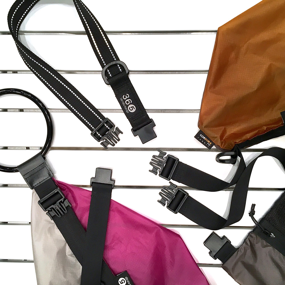 コンポジションアイテムは、ストラップのバックルが共通仕様。ワンプッシュで簡単に着脱可能なセパレートタイプのバックルを採用しており、ストラップを付けかえたり、バッグ同士をつないだりが可能。
